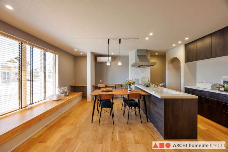 ヌックベンチやデスクコーナーがキッチンから見渡せるので