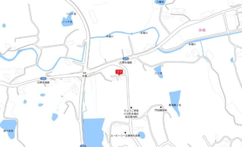 ※地図上の「対象地」は「兵庫県加東市永福 」付近を示しています。実際の場所ではない場合がございます。詳しくはお問い合わせください。