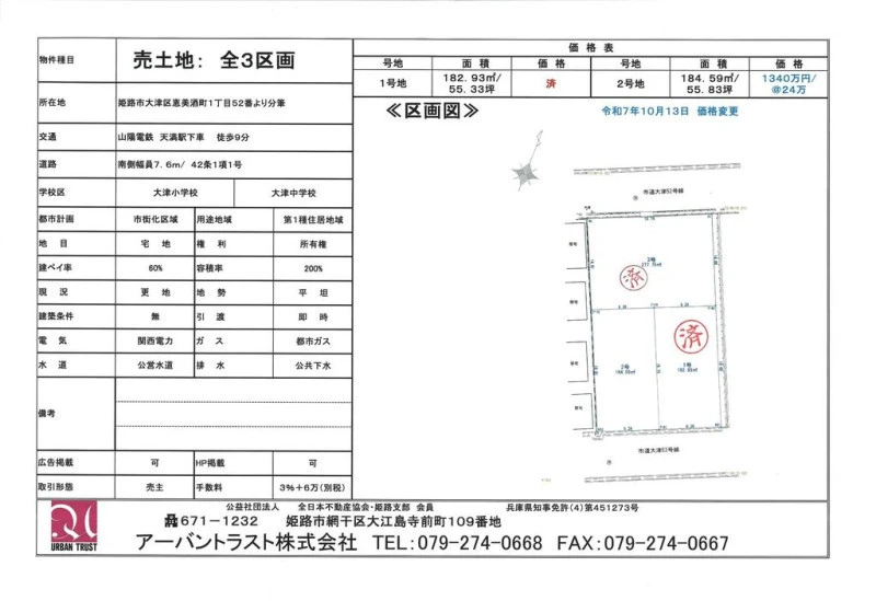 | 建ぺい率/容積率 | 60% / 200% | 都市計画 | 市街化区域 |