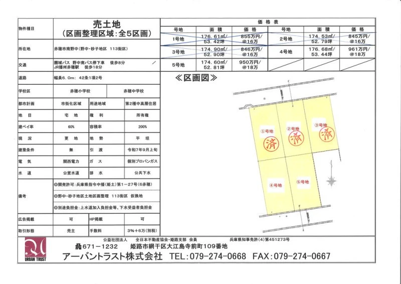 | 条件等 | 建築条件無 セットバック無 | ||