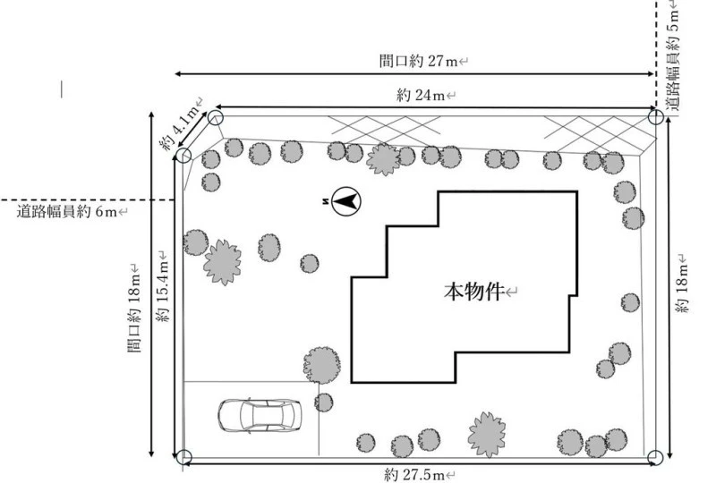 角地 東 間口24m 私道 幅5m 位置指定無 北 間口15.4m 私道 幅6m 位置指定無 |