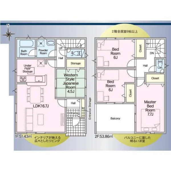 | 設備 | 都市ガス、システムキッチン、カウンターキッチン、浄水器、トイレ2箇所、温水洗浄便座、浴室乾燥機、照明器具付き、複層ガラス、ルーフバルコニー、床下収納、駐車2台可、ディンプルキー、モニタ付インターホン、火災警報器等設置済 | ||