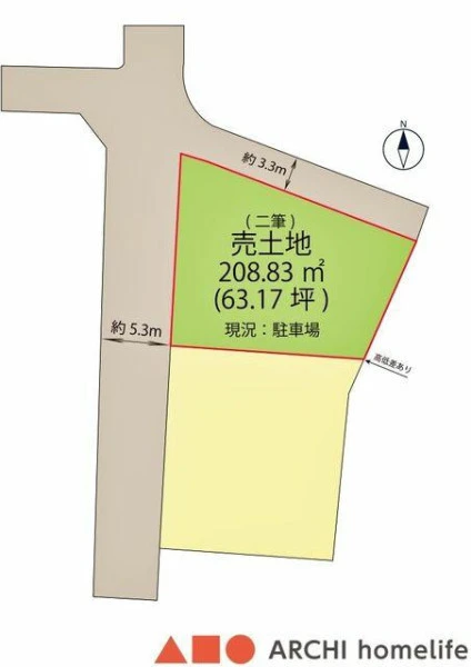 | 土地面積 | 208.83㎡(公簿) | 私道面積 | 私道負担面積無 |