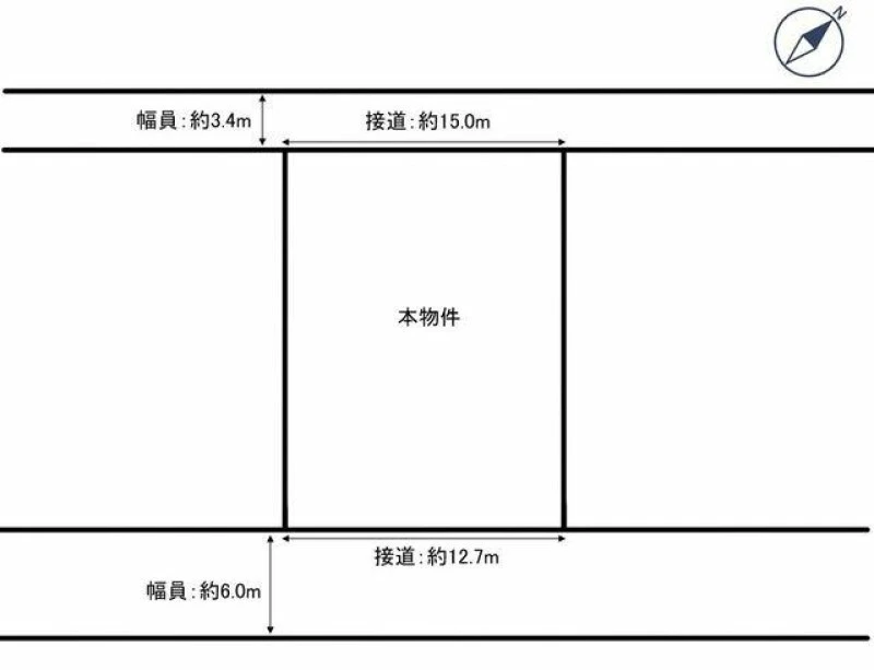二方(除角地) 北 間口15m 幅3.4m 南 間口12.7m 幅6m |