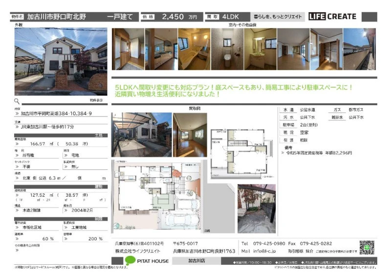 | 土地面積 | 166.57㎡(公簿) | 私道面積 | 私道負担面積無 |