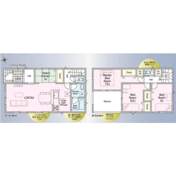 | 設備 | ガスその他、電気、上水道、下水道、システムキッチン、カウンターキッチン、浄水器、IHクッキングヒーター、給湯、トイレ2箇所、温水洗浄便座、シャンプードレッサー、浴室乾燥機、フローリング、複層ガラス、ルーフバルコニー、オール電化、収納スペース、床下収納、駐車2台可、ディンプルキー、モニタ付インターホン、火災警報器等設置済、建設住宅性能評価取得(予定含む) | ||