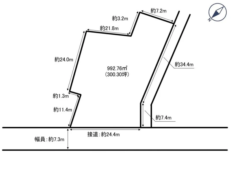 | 接道状況 | 北西 間口24.4m 幅7.3m | ||