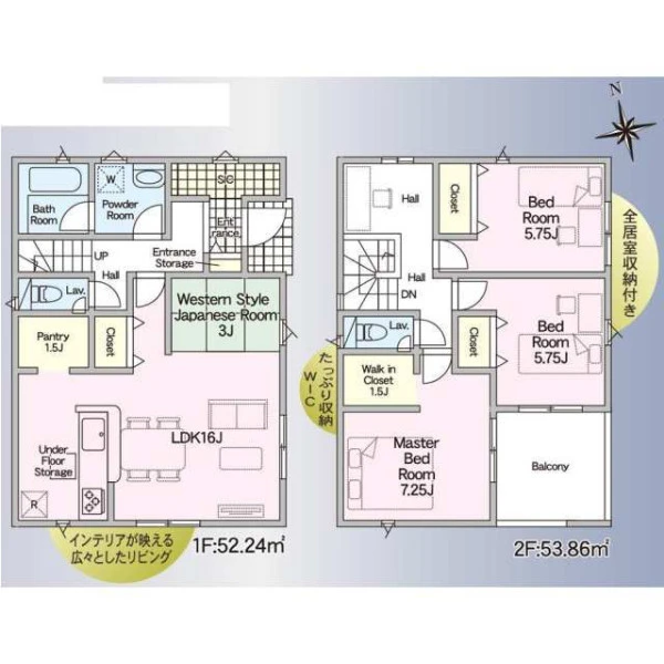 | 設備 | ガスその他、電気、上水道、下水道、システムキッチン、カウンターキッチン、浄水器、IHクッキングヒーター、給湯、トイレ2箇所、温水洗浄便座、シャンプードレッサー、浴室乾燥機、フローリング、複層ガラス、ルーフバルコニー、オール電化、収納スペース、ウォークインクローゼット、床下収納、シューズインクローゼット、ディンプルキー、モニタ付インターホン、火災警報器等設置済、建設住宅性能評価取得(予定含む) | ||