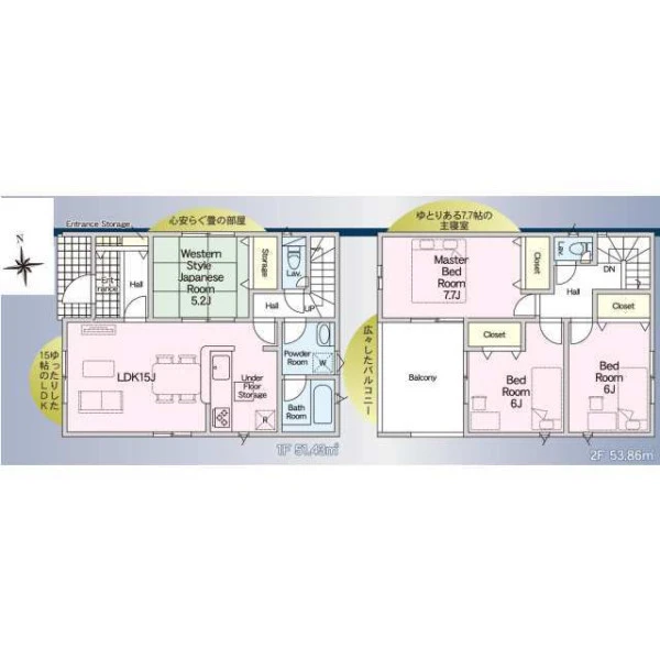 | 設備 | ガスその他、電気、上水道、下水道、システムキッチン、カウンターキッチン、浄水器、IHクッキングヒーター、給湯、トイレ2箇所、温水洗浄便座、シャンプードレッサー、浴室乾燥機、フローリング、複層ガラス、ルーフバルコニー、オール電化、収納スペース、床下収納、駐車2台可、ディンプルキー、モニタ付インターホン、火災警報器等設置済、建設住宅性能評価取得(予定含む) | ||