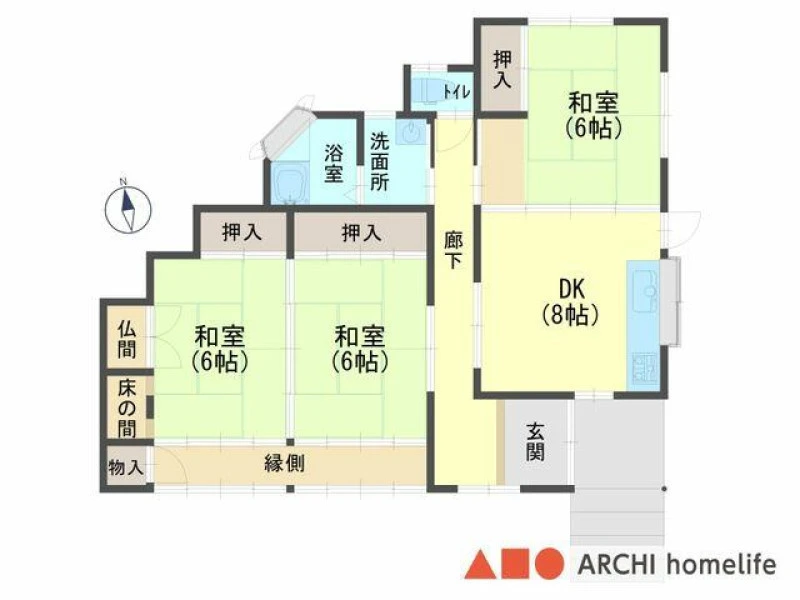 | 特徴 | 高台に立地、角地、前面棟無、和室、全居室6帖以上、全居室収納 | ||