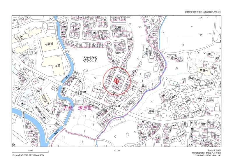 ※地図上の「対象地」は「京都府京都市西京区大枝塚原町 」付近を示しています。実際の場所ではない場合がございます。詳しくはお問い合わせください。