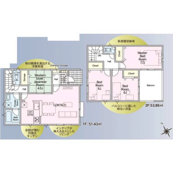| 設備 | ガスその他、電気、上水道、下水道、システムキッチン、カウンターキッチン、浄水器、IHクッキングヒーター、給湯、トイレ2箇所、温水洗浄便座、シャンプードレッサー、浴室乾燥機、フローリング、複層ガラス、ルーフバルコニー、オール電化、収納スペース、床下収納、ディンプルキー、モニタ付インターホン、火災警報器等設置済、建設住宅性能評価取得(予定含む) | ||