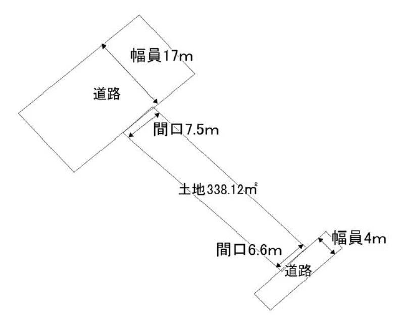 二方(除角地) 北西 間口7.5m 公道 幅17m 南東 間口6.6m 公道 幅4m |