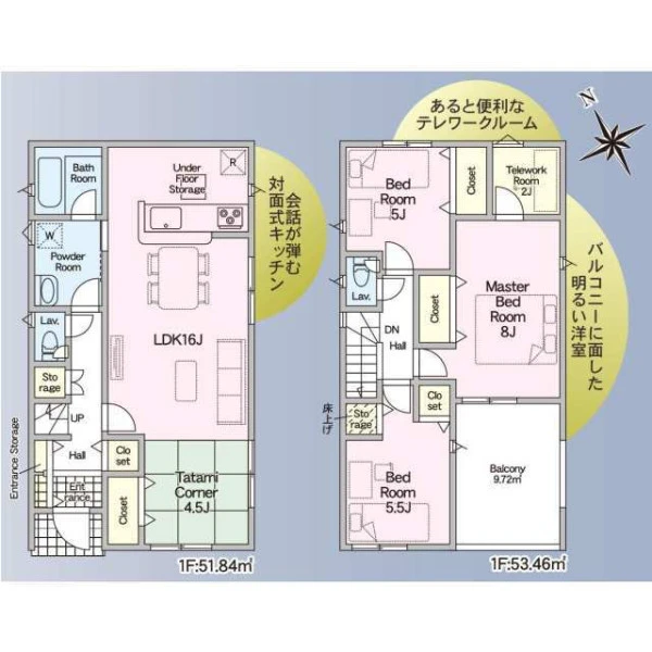 | 設備 | 都市ガス、電気、上水道、下水道、システムキッチン、カウンターキッチン、浄水器、給湯、トイレ2箇所、温水洗浄便座、シャンプードレッサー、浴室乾燥機、フローリング、複層ガラス、ルーフバルコニー、収納スペース、床下収納、駐車2台可、ディンプルキー、モニタ付インターホン、火災警報器等設置済、建設住宅性能評価取得(予定含む) | ||