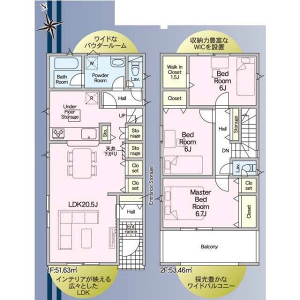 | 設備 | 都市ガス、電気、上水道、下水道、システムキッチン、カウンターキッチン、浄水器、給湯、トイレ2箇所、温水洗浄便座、シャンプードレッサー、浴室乾燥機、フローリング、複層ガラス、ルーフバルコニー、収納スペース、ウォークインクローゼット、床下収納、駐車2台可、ディンプルキー、モニタ付インターホン、火災警報器等設置済、建設住宅性能評価取得(予定含む) | ||