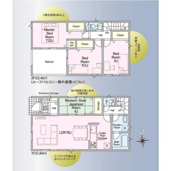 | 設備 | ガスその他、電気、上水道、下水道、システムキッチン、カウンターキッチン、浄水器、IHクッキングヒーター、給湯、トイレ2箇所、温水洗浄便座、シャンプードレッサー、浴室乾燥機、フローリング、複層ガラス、ルーフバルコニー、オール電化、収納スペース、床下収納、駐車2台可、ディンプルキー、モニタ付インターホン、火災警報器等設置済 | ||