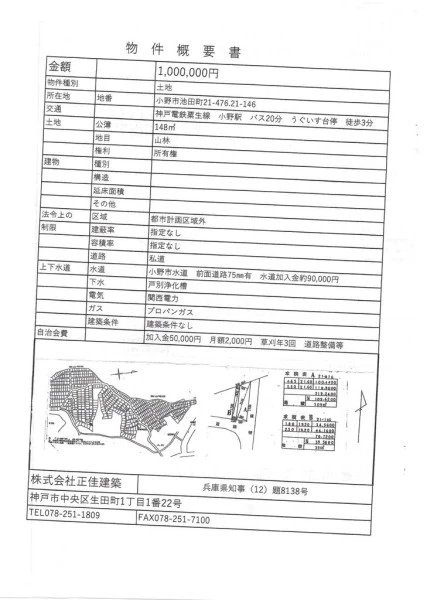 ※地図上の「対象地」は「兵庫県小野市池田町 」付近を示しています。実際の場所ではない場合がございます。詳しくはお問い合わせください。