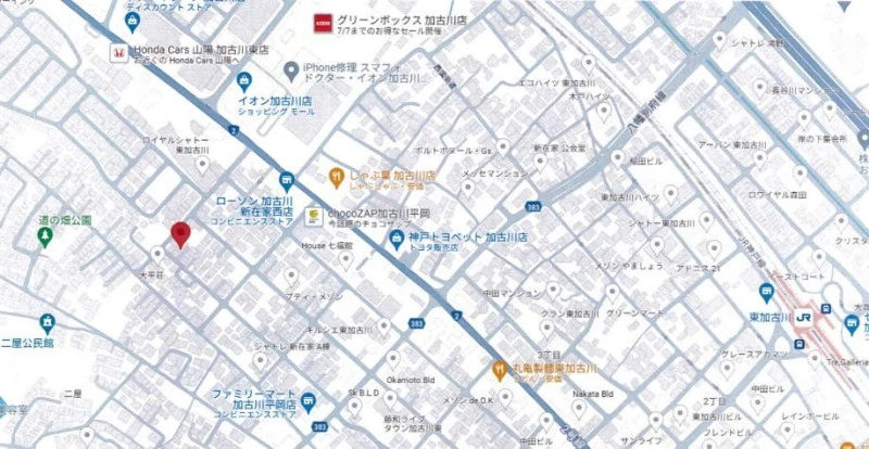 ※地図上の「対象地」は「兵庫県加古川市平岡町新在家 」付近を示しています。実際の場所ではない場合がございます。詳しくはお問い合わせください。
