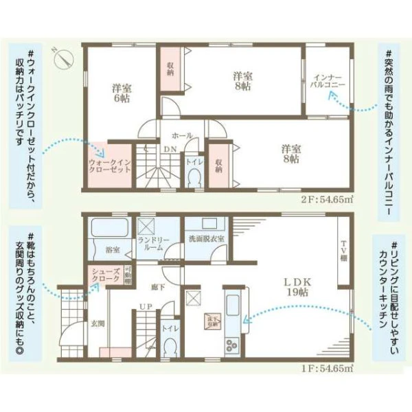 | 設備 | システムキッチン、浄水器、追焚機能、シャンプードレッサー、浴室乾燥機、照明器具付き、床下収納、ディンプルキー、モニタ付インターホン、上水道、下水道、オール電化、IHクッキングヒーター、駐車2台可、カウンターキッチン、ウォークインクローゼット、シューズインクローゼット | ||