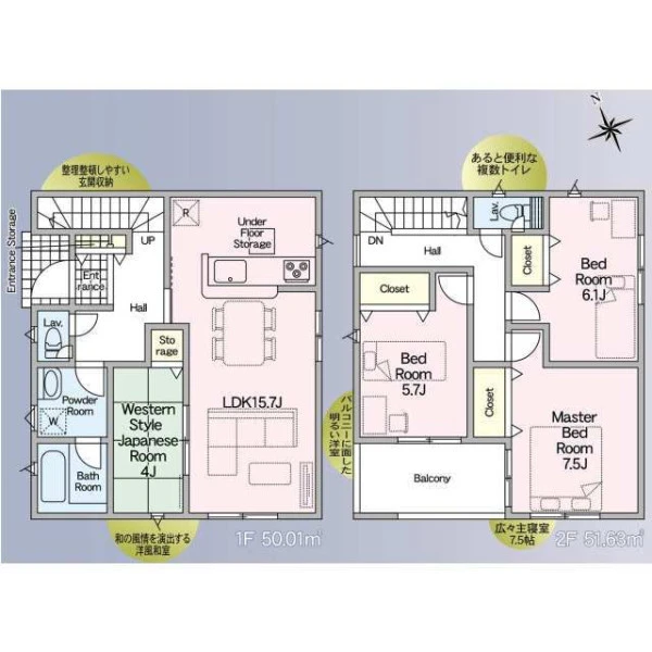 | 設備 | 都市ガス、電気、上水道、下水道、システムキッチン、カウンターキッチン、浄水器、給湯、トイレ2箇所、温水洗浄便座、シャンプードレッサー、浴室乾燥機、フローリング、複層ガラス、ルーフバルコニー、収納スペース、床下収納、ディンプルキー、モニタ付インターホン、火災警報器等設置済、建設住宅性能評価取得(予定含む) | ||