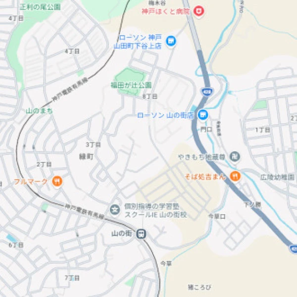 神戸電鉄有馬線 山の街駅 徒歩6分 (480m) 神戸電鉄有馬線 箕谷駅 徒歩24分 (1920m) |