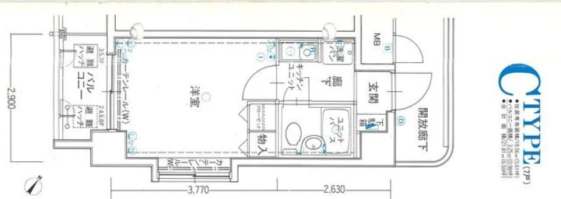 | 間取り | 1K | 間取り向き | (角部屋) |