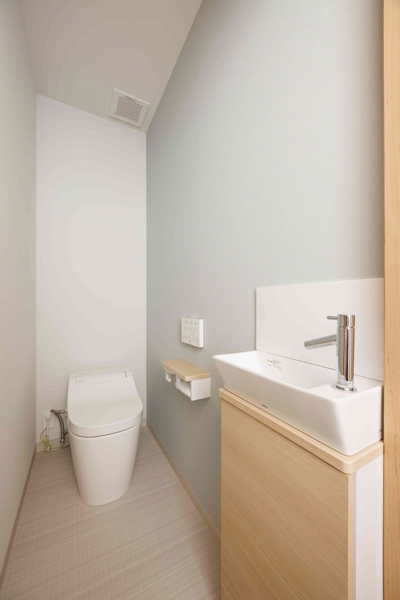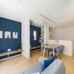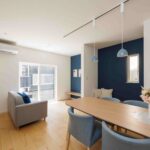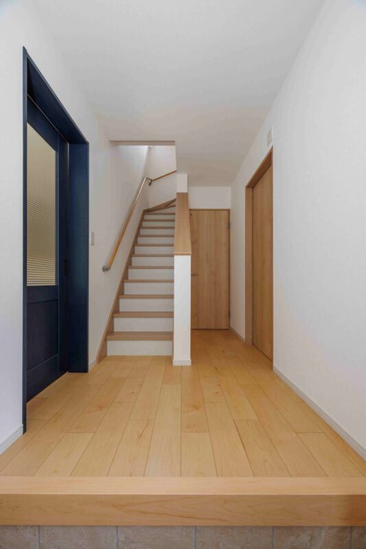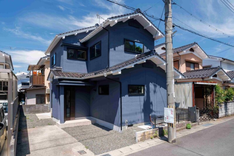 ナチュラルな木目と深みのあるブルーが調和した、上質なリノベーション住宅。