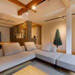 グレートーンの壁と木目のコントラストが、落ち着いた大人の空間を演出します。