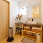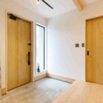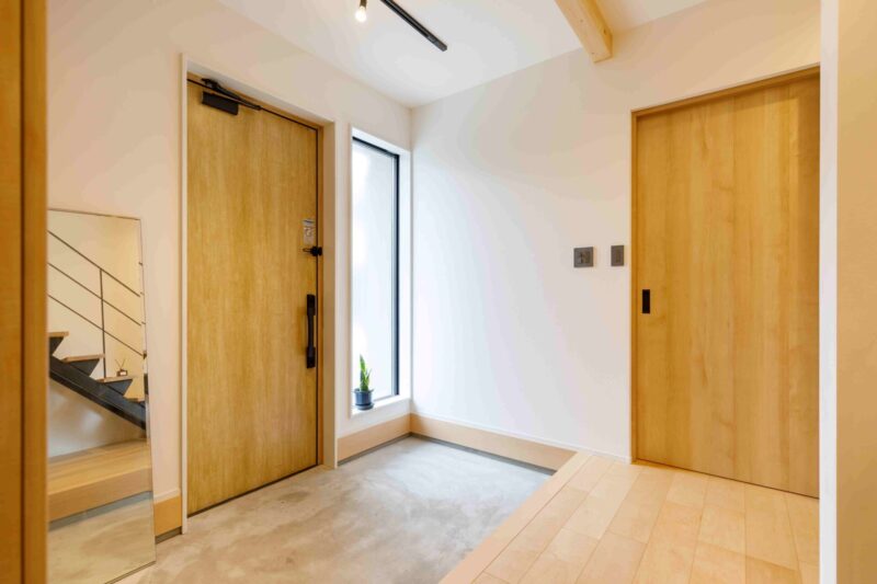 明るい木目と白壁が清潔感を感じさせる玄関。