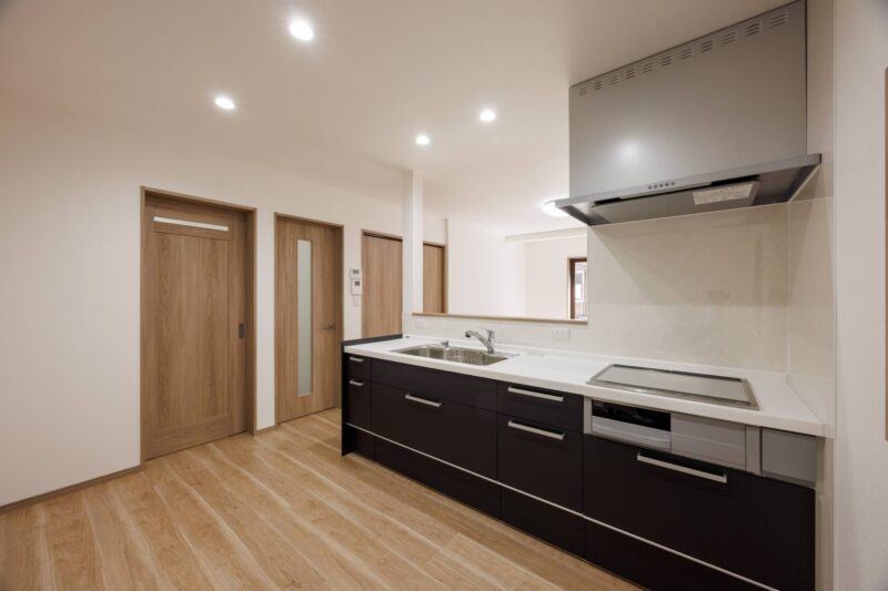 家族と会話しながら料理できるオープンスタイル。IHクッキングヒーターや豊富な収納など使い勝手抜群です。
