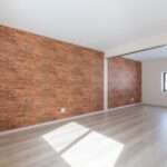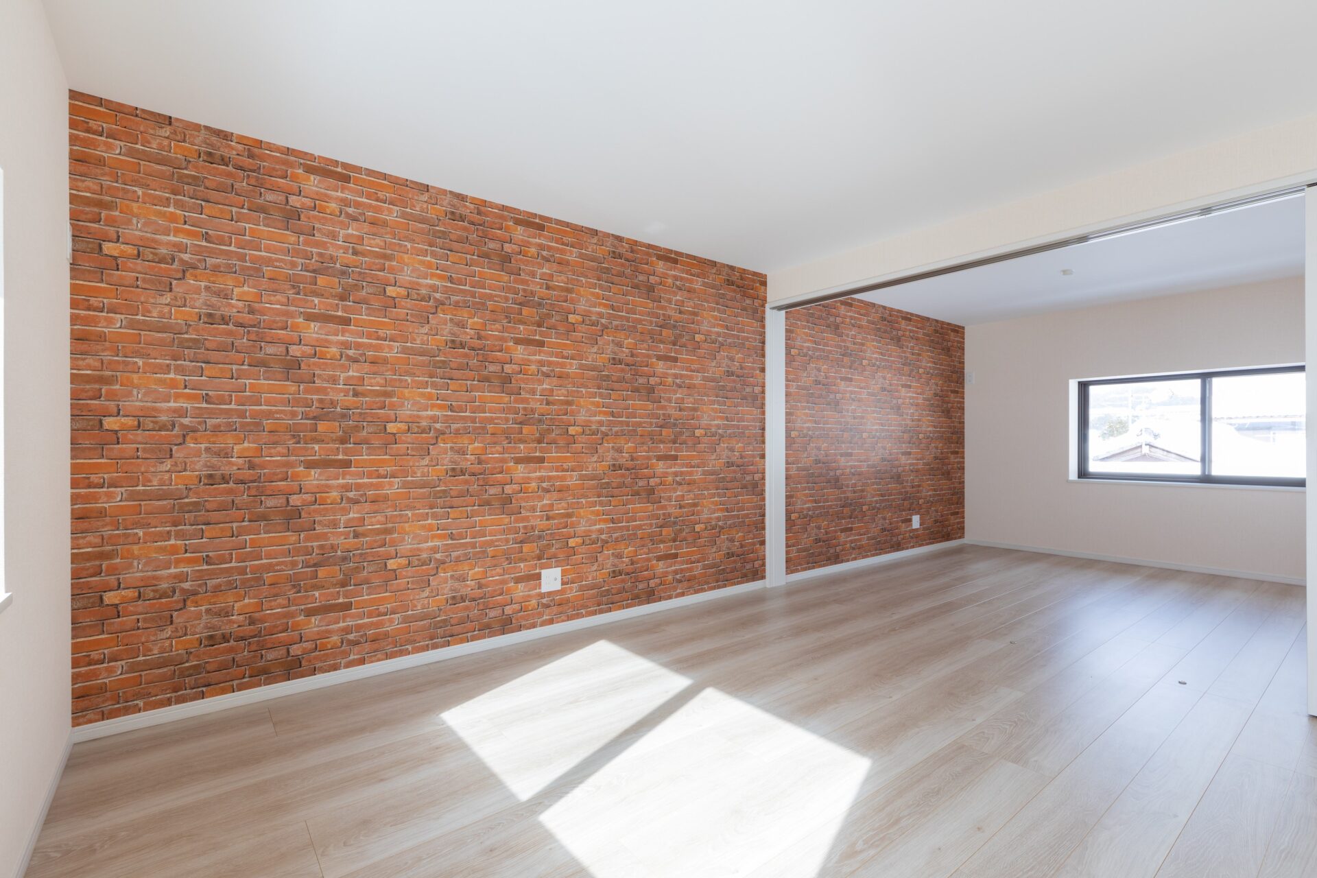 可動間仕切りで広々と使える設計。レンガ調クロスが印象的で窓からの陽光も温かく、インテリアをより引き立てます。