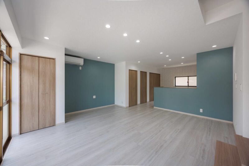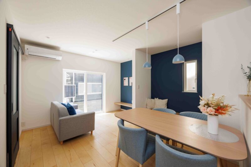 ブルーと木のぬくもりが調和する家